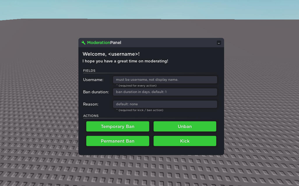 I made this UI back when I am trying to make a moderation UI that you can use to punish people with cool-looking user experience that you'll never get bored of. Sadly, I do not release this to the public (as for now) due to the outdated script that it has, but soon, I will release it (on my marketplace of course, because I need money lol).